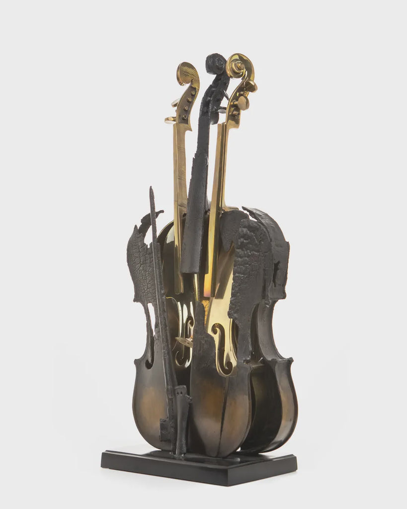 Arman är framför allt känd för sina skulpturer där han sammanställer och komponerar objekt, ofta musikinstrument som saxofoner och fioler.