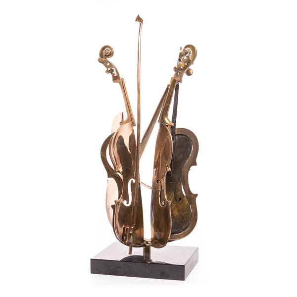 Fernandez Arman (1928-2005) var en fransk skulptör och bildkonstnär verksam i Frankrike och USA. Han studerade vid Ècole du Louvre i Paris. Arman tillhörde de så kallade ”nyrealisterna”, en grupp skapad av Pierre Restany och Yves Klein m.fl. Nyrealisterna avbildade massproducerade vardagsföremål och integrerade dem i sina verk. Restany hävdar att "nyrealismen" observerar den sociologiska verkligheten utan några kontroversiella avsikter. Detta kan möjligen öppna upp till förståelse av Armans verk. Under det sena 1950-talet flyttade sig fokuset i hans arbete från traditionellt måleri och skulptur till ”readymade” och objektet i sig. Readymade betecknar ett vardagligt, ofta massproducerat föremål, inom konstvärlden ofta kallat "objet trouvé", som en konstnär valt ut och upphöjt till konst. Arman är mest känd för sina skulpturer föreställande sammansättningar av objekt, ofta musikinstrument, så som saxofoner och fioler.