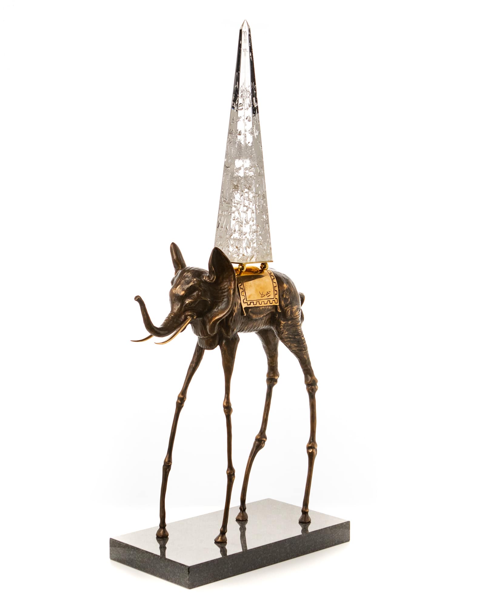 Elefanten som bär på en obelisk skildras i en av Dalís mest kända målningar "The Temptation of St Anthony" (1946). Fyra elefanter ledda av en häst i ett ökenlandskap bärandes på symboliska föremål som representerar olika frestelser. Obelisken, symbol för kunskap och makt, är Dalís hyllning till Gian Lorenzo Berninis skulptur i Rom. Dalís elefanter har överdrivet långa, tunna och flerledade ben som höjer den tunga kroppen mot himlen. Obelisken anspelar på en tröttsam börda men i Dalís värld förvrängs verkligheten och gör den tyngdlös i en illusion av att den nästan svävar ovanför sadeln. Kombinationen av dessa motsägelsefulla element skapar en känsla av oordning och obalans som bara kan existera i en dröm. Denna surrealistiska varelse, som rör sig genom rymden symboliserar fantasins flykt till ett fascinerande universum. Bilden av de långsträckta benen utöver den höga spetsiga obelisken anspelar på människans strävan efter att alltid "nå högre". Liksom den mjuka klockan blev elefanten en viktig symbol som återkommer upprepade gånger i Dalís skapande.