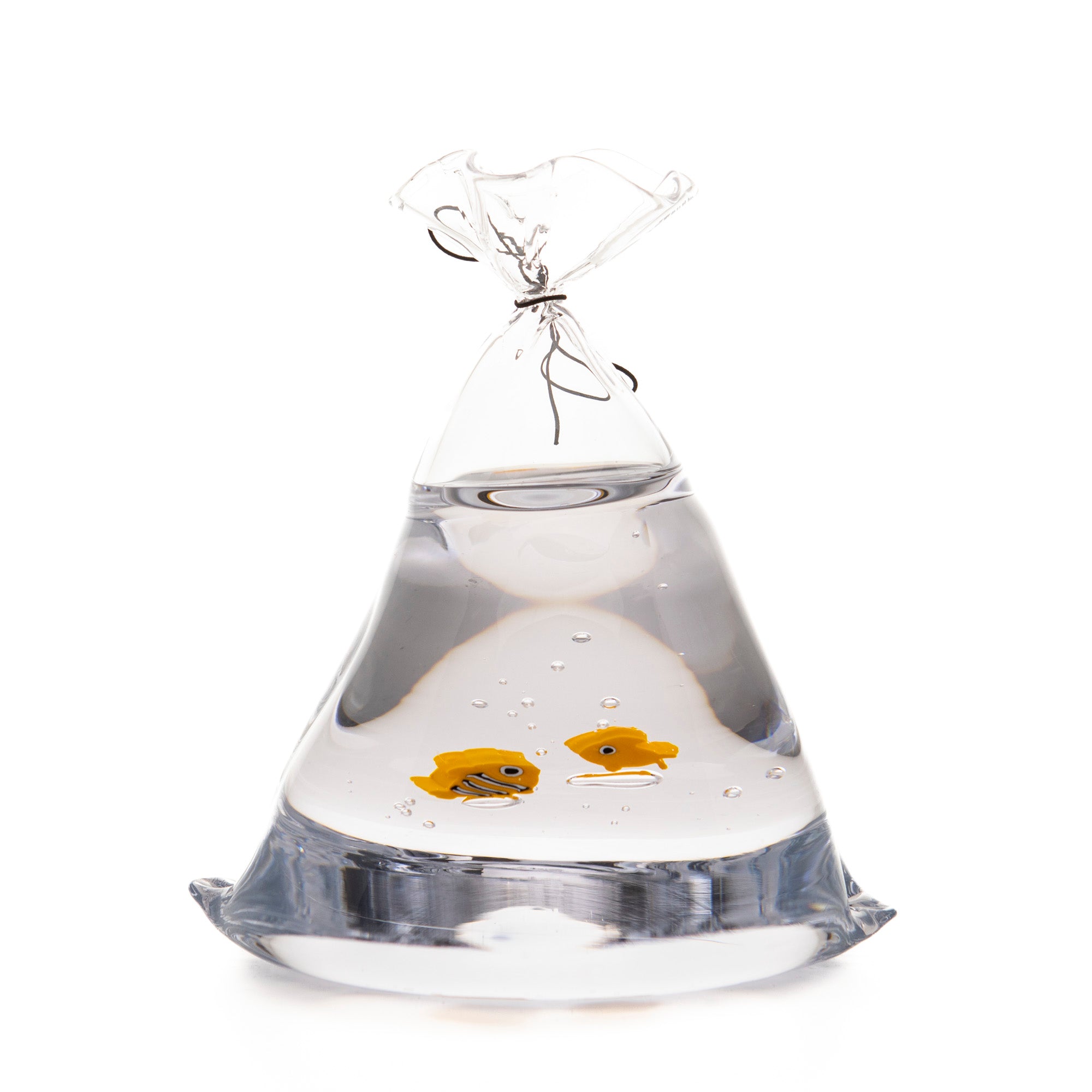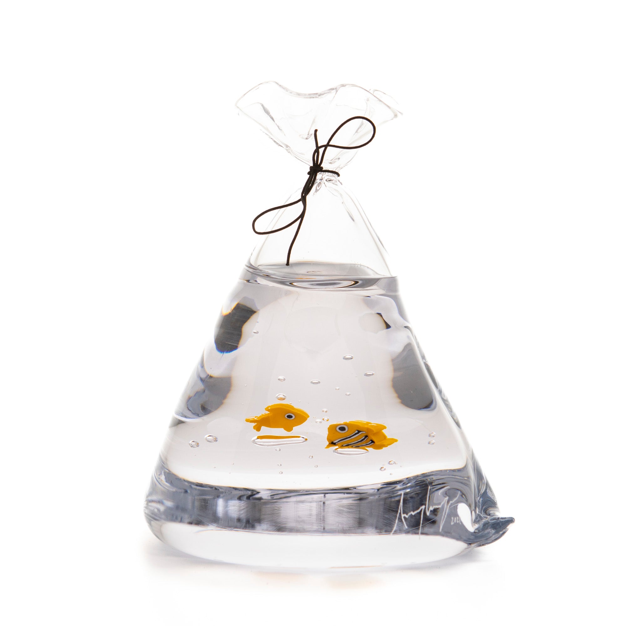 Amy om fiskpåsarna: "Fiskpåsarna kom från ett barndomsminne. Vi hade många guldfiskar och det var i en påse de kom i när de gjorde resan hem. Glaset har på många sätt likheter med vatten och för mig är det naturligt att använda glaset till att spegla andra element”.
