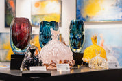 Alla konstverken är signerade unikat i serie. Det kan finnas flera av samma storleks- och färgkombination men alla blir olika med den handblåsta och skulpterade tekniken.