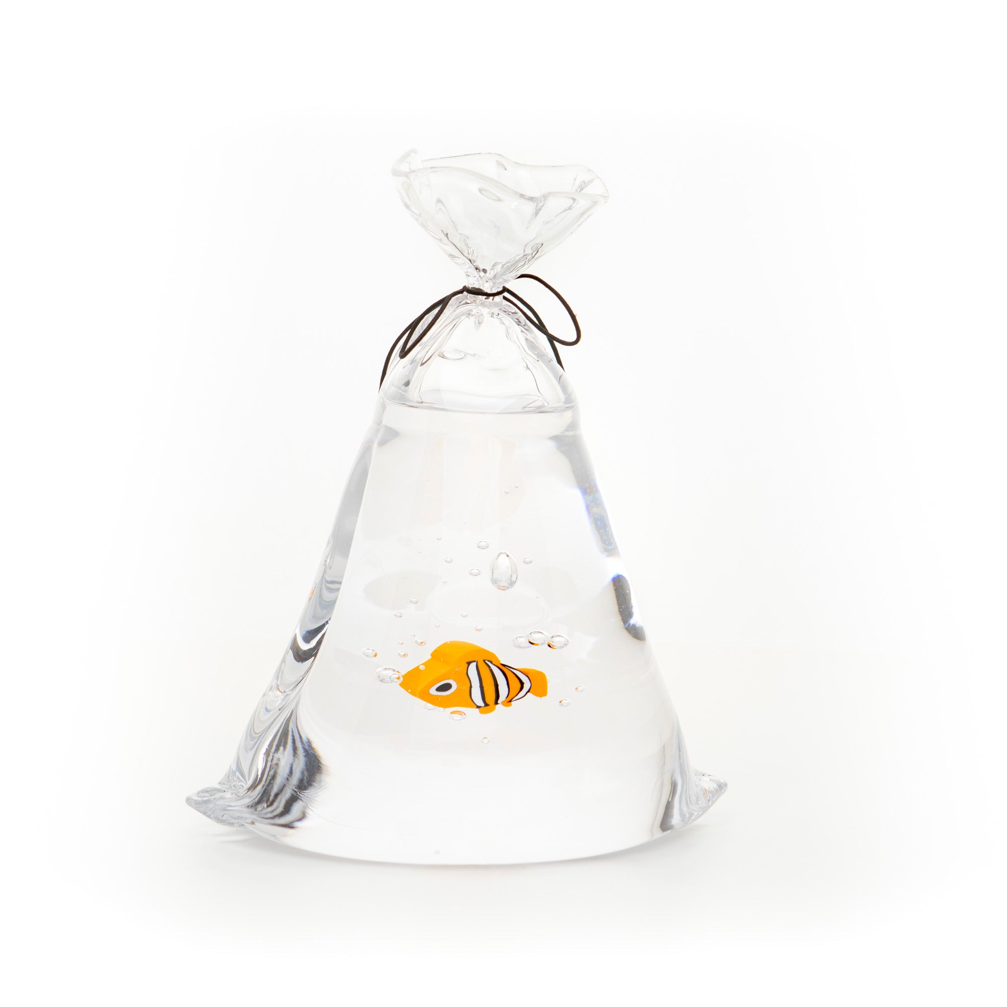 Amy om fiskpåsarna: "Fiskpåsarna kom från ett barndomsminne. Vi hade många guldfiskar och det var i en påse de kom i när de gjorde resan hem. Glaset har på många sätt likheter med vatten och för mig är det naturligt att använda glaset till att spegla andra element”.
