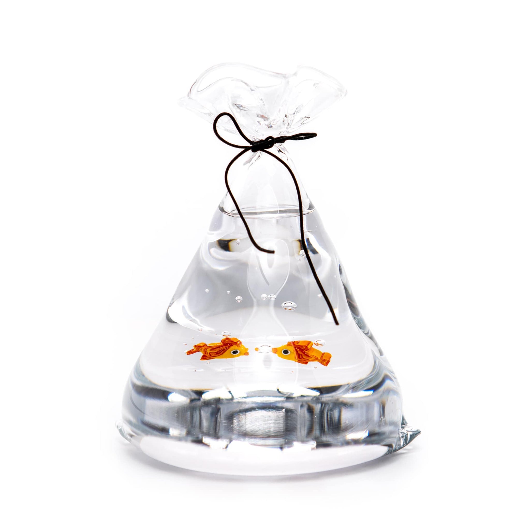Amy om fiskpåsarna: "Fiskpåsarna kom från ett barndomsminne. Vi hade många guldfiskar och det var i en påse de kom i när de gjorde resan hem. Glaset har på många sätt likheter med vatten och för mig är det naturligt att använda glaset till att spegla andra element”.