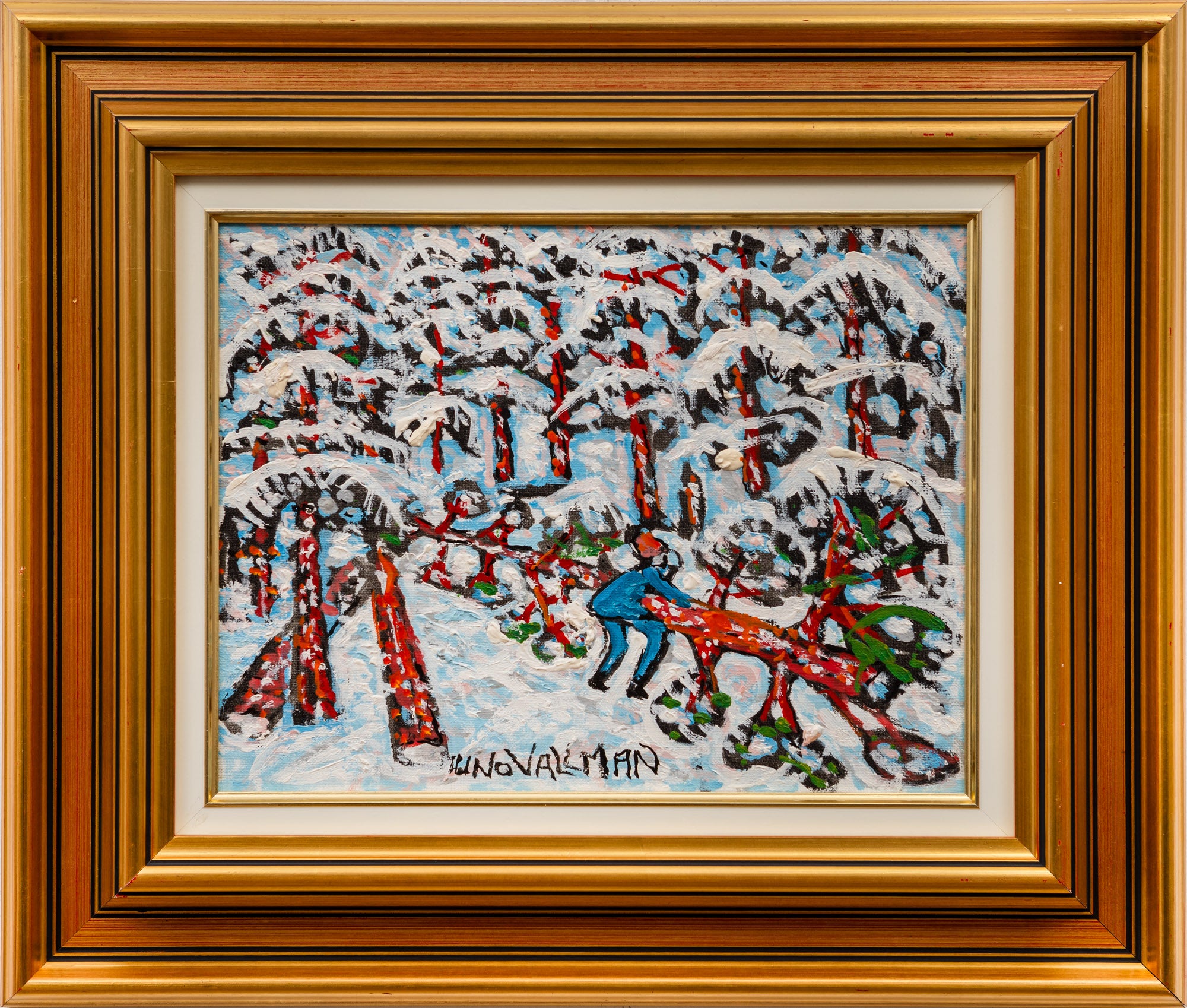 Uno Vallman (1913-2004) föddes i Dalarna som fattighuspojke. Från 1936 började studera konst. Först på Otte Skölds målarskola och från 1939 vid konsthögskolan i Stockholm. Vallmans första uppmärksammade framträdande skedde 1945 på Färg och Form i Stockholm, vilket tillsammans med en separatutställning i Konstgalleriet i Göteborg 1946 blev hans genombrott. Uno Vallman har ett eget ansikte och ett eget språk i sitt måleri. Ibland kallades Vallman på 1960-talet "Nordens Picasso" av franska konstrecensenter, då han hade utställningar i Paris. Vallman hade en egen nyskapande stil som är väldigt svår att kopiera, även kallad vallmanism av recensenter i Frankrike. Återkommande motiv i Vallmans måleri är tuppar, blomsterstilleben och landskap. Han har även skildrat kända Stockholmsmiljöer. Hans största konstgärning är utan tvekan de många monumentala målningarna i kyrkor, skolor och förvaltningsbyggnader runt om i landet.