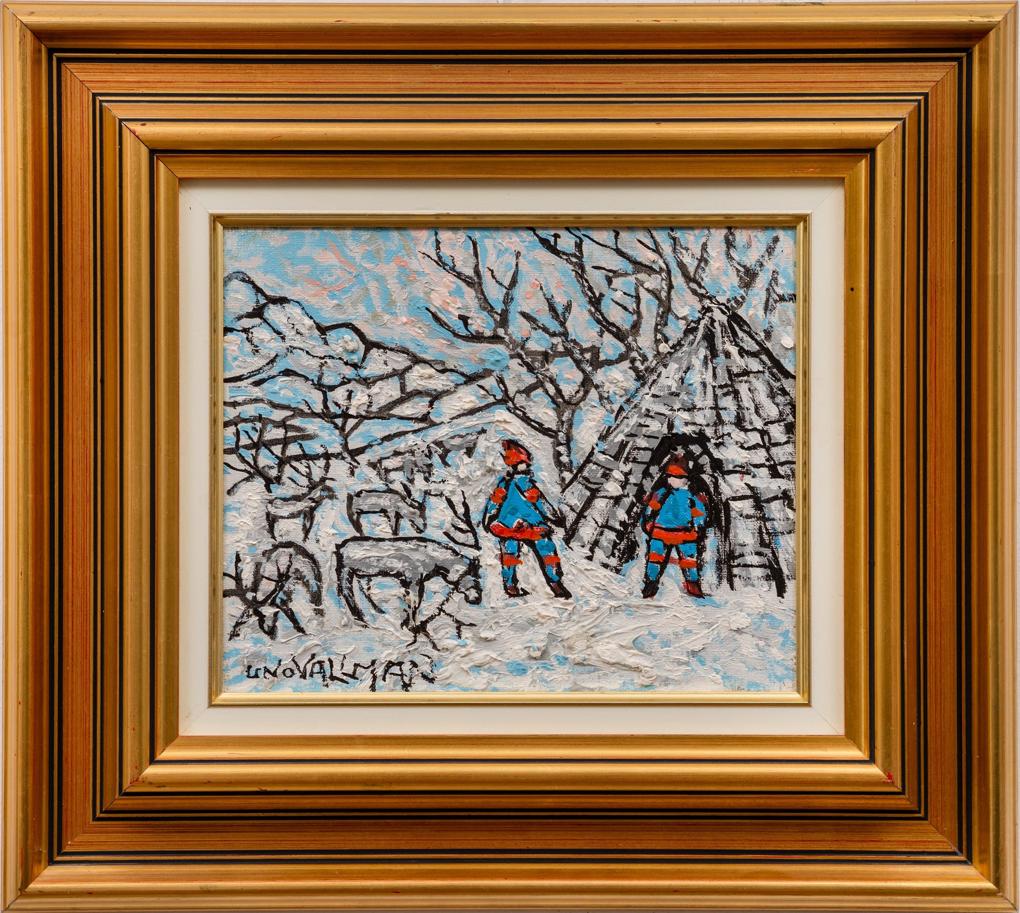 Uno Vallman (1913-2004) föddes i Dalarna som fattighuspojke. Från 1936 började studera konst. Först på Otte Skölds målarskola och från 1939 vid konsthögskolan i Stockholm. Vallmans första uppmärksammade framträdande skedde 1945 på Färg och Form i Stockholm, vilket tillsammans med en separatutställning i Konstgalleriet i Göteborg 1946 blev hans genombrott. Uno Vallman har ett eget ansikte och ett eget språk i sitt måleri. Ibland kallades Vallman på 1960-talet "Nordens Picasso" av franska konstrecensenter, då han hade utställningar i Paris. Vallman hade en egen nyskapande stil som är väldigt svår att kopiera, även kallad vallmanism av recensenter i Frankrike. Återkommande motiv i Vallmans måleri är tuppar, blomsterstilleben och landskap. Han har även skildrat kända Stockholmsmiljöer. Hans största konstgärning är utan tvekan de många monumentala målningarna i kyrkor, skolor och förvaltningsbyggnader runt om i landet.