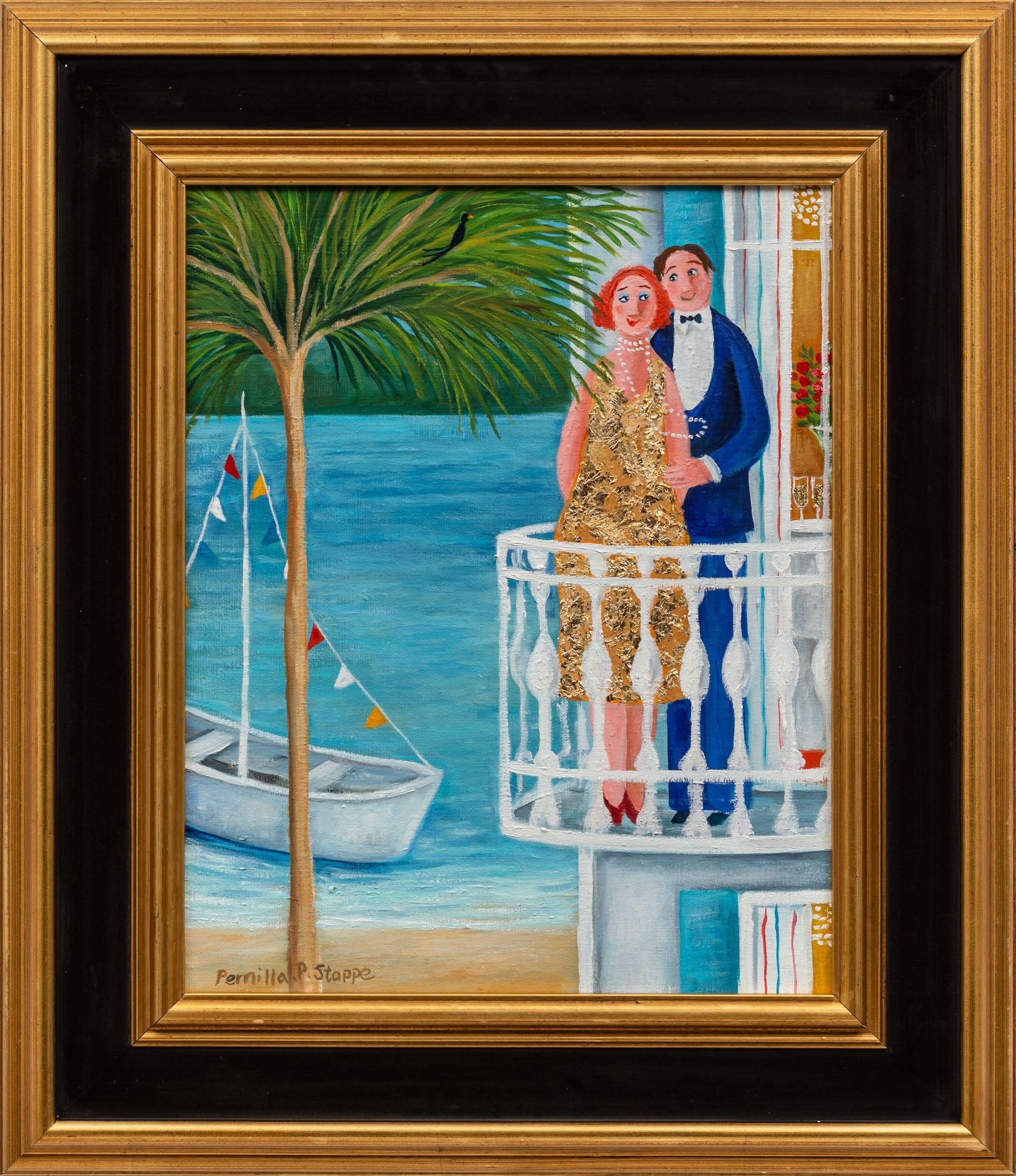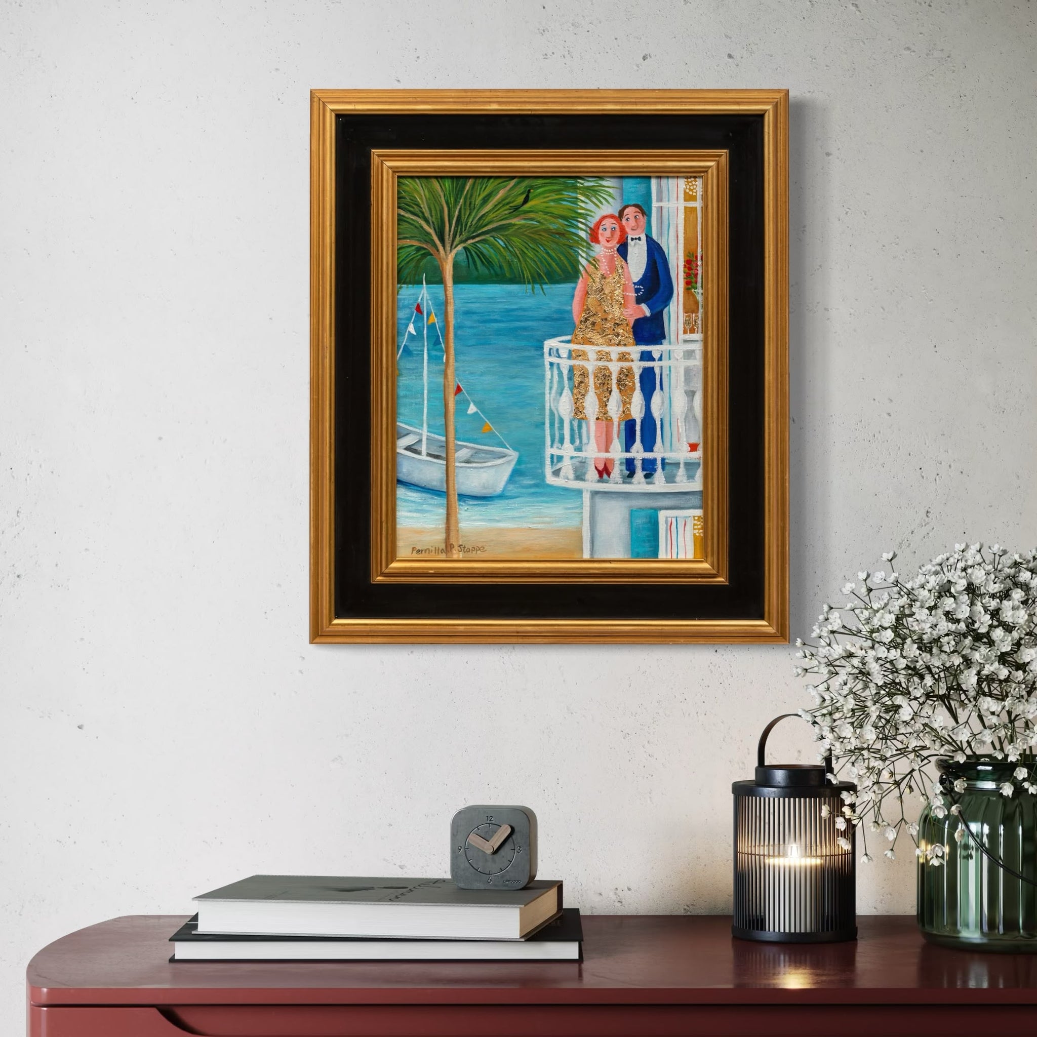 Målningarna bär på en genomgående positivitet där det mänskliga samspelet står i centrum. Genom scener av fest och musik, genomsyrade av kärlek, glädje och en lekfull tillåtelse att "ha det lite skoj", skapas en förädlad värld av fantasi och drömmar. Resultatet blir en naivistisk resa med särskild känsla för atmosfär och stämning.