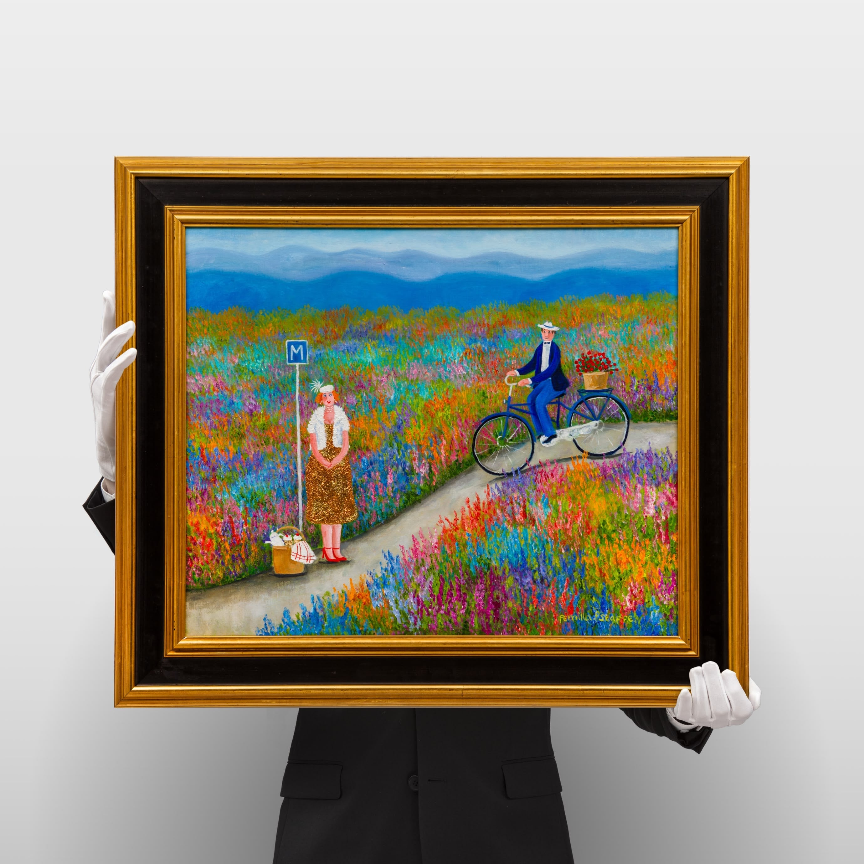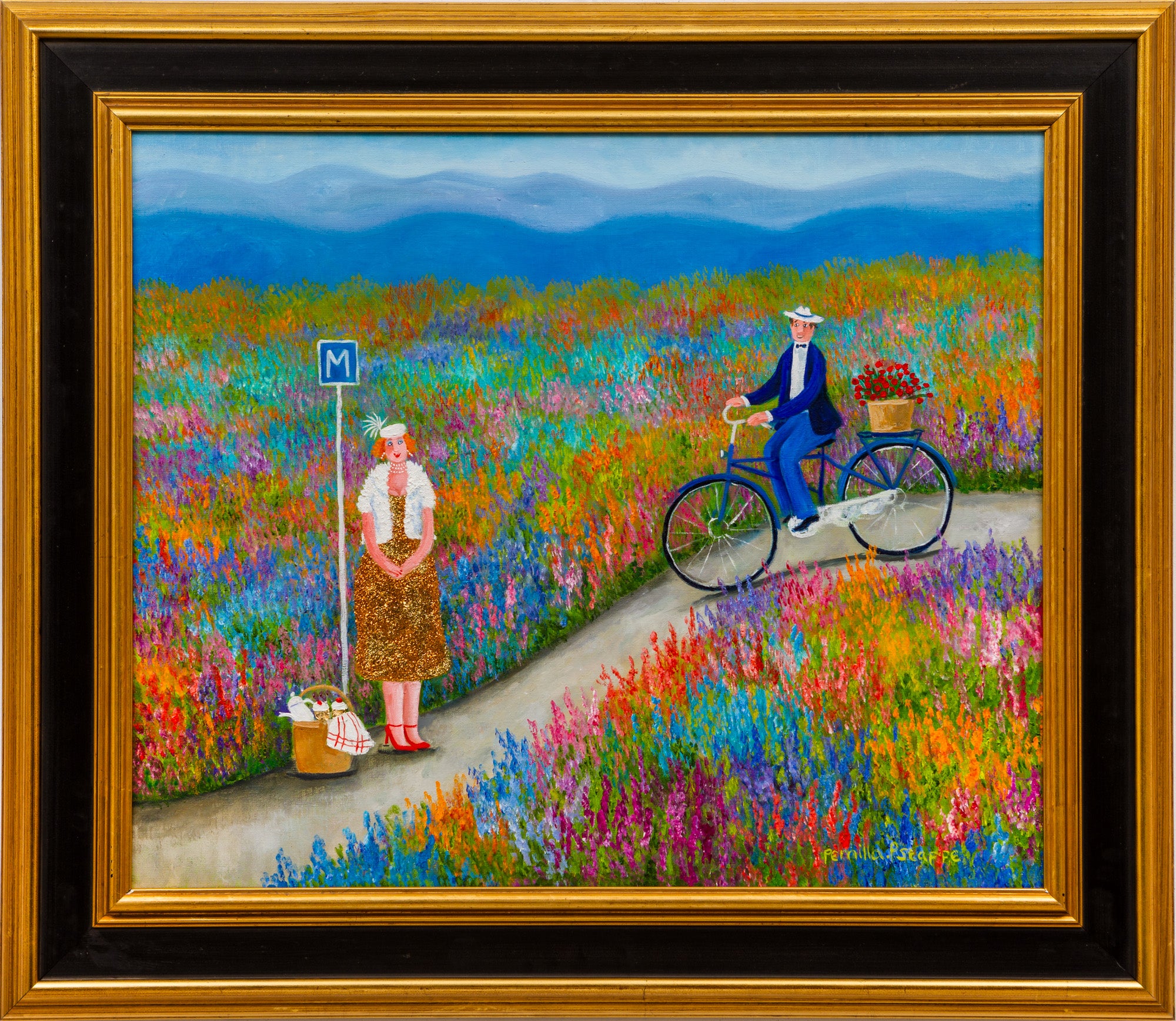 Målningarna bär på en genomgående positivitet där det mänskliga samspelet står i centrum. Genom scener av fest och musik, genomsyrade av kärlek, glädje och en lekfull tillåtelse att "ha det lite skoj", skapas en förädlad värld av fantasi och drömmar. Resultatet blir en naivistisk resa med särskild känsla för atmosfär och stämning.