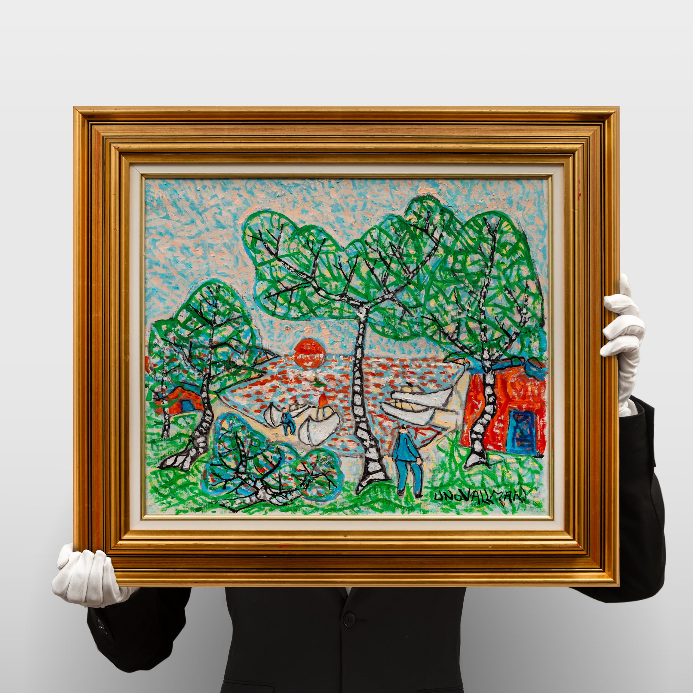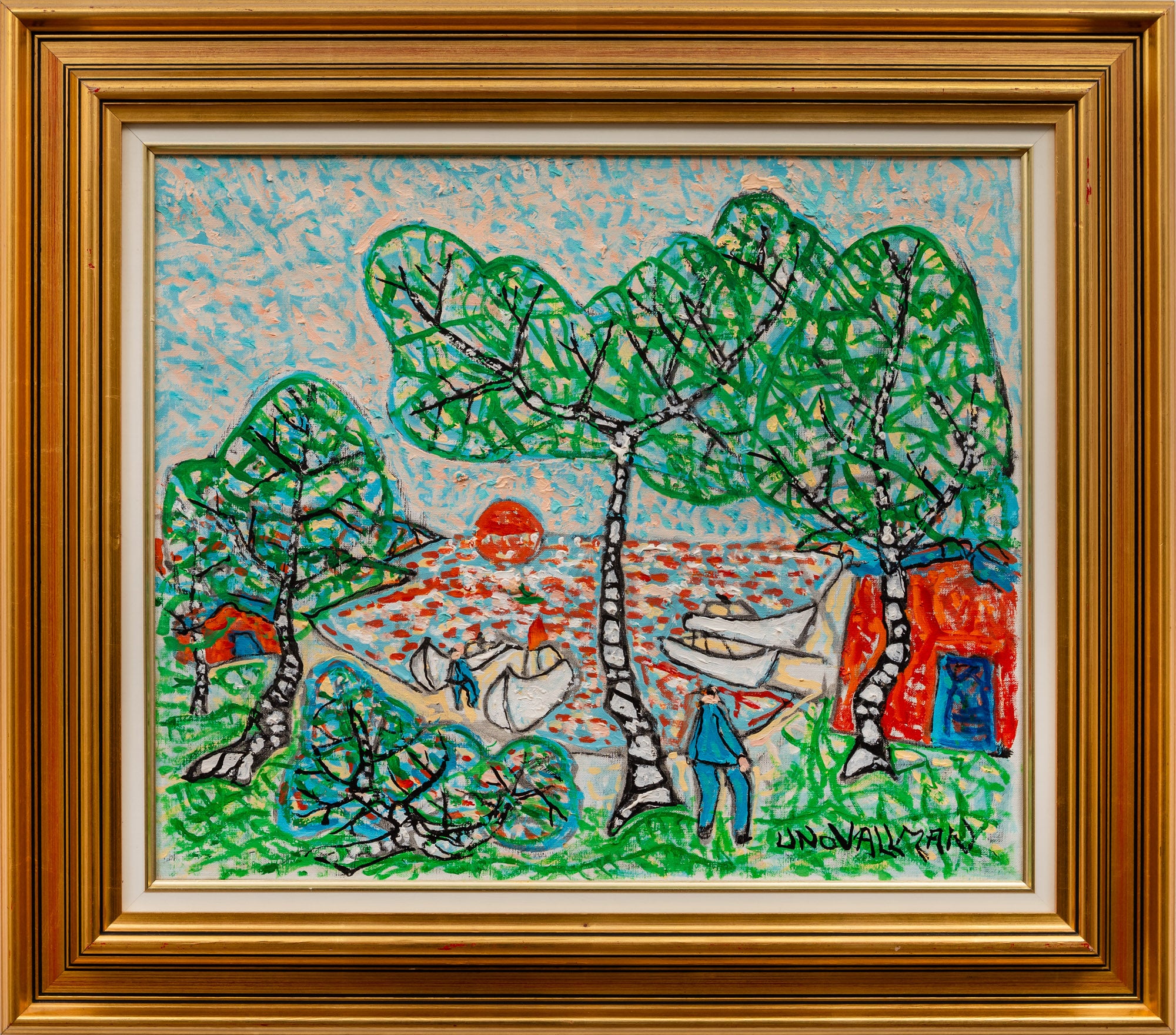 Uno Vallman (1913-2004) föddes i Dalarna som fattighuspojke. Från 1936 började studera konst. Först på Otte Skölds målarskola och från 1939 vid konsthögskolan i Stockholm. Vallmans första uppmärksammade framträdande skedde 1945 på Färg och Form i Stockholm, vilket tillsammans med en separatutställning i Konstgalleriet i Göteborg 1946 blev hans genombrott. Uno Vallman har ett eget ansikte och ett eget språk i sitt måleri. Ibland kallades Vallman på 1960-talet "Nordens Picasso" av franska konstrecensenter, då han hade utställningar i Paris. Vallman hade en egen nyskapande stil som är väldigt svår att kopiera, även kallad vallmanism av recensenter i Frankrike. Återkommande motiv i Vallmans måleri är tuppar, blomsterstilleben och landskap. Han har även skildrat kända Stockholmsmiljöer. Hans största konstgärning är utan tvekan de många monumentala målningarna i kyrkor, skolor och förvaltningsbyggnader runt om i landet.