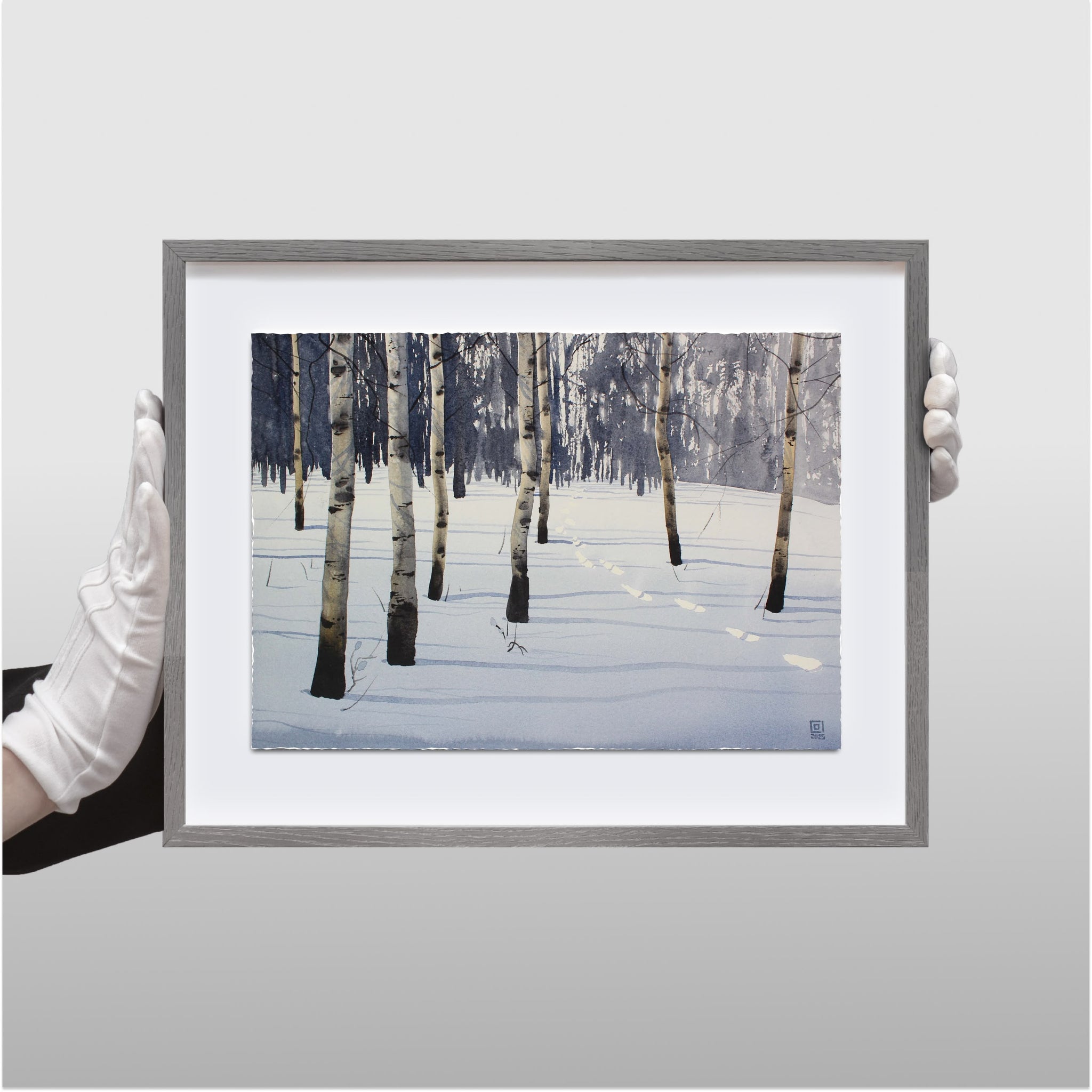 The work is displayed with a hand-built gray wooden frame and anti-reflective and UV-protective Art glass. You can choose to purchase the work as just the sheet or with that framing through the options here. Contact us if you wish to request other frame options. We have our own Frame shop and are happy to help.