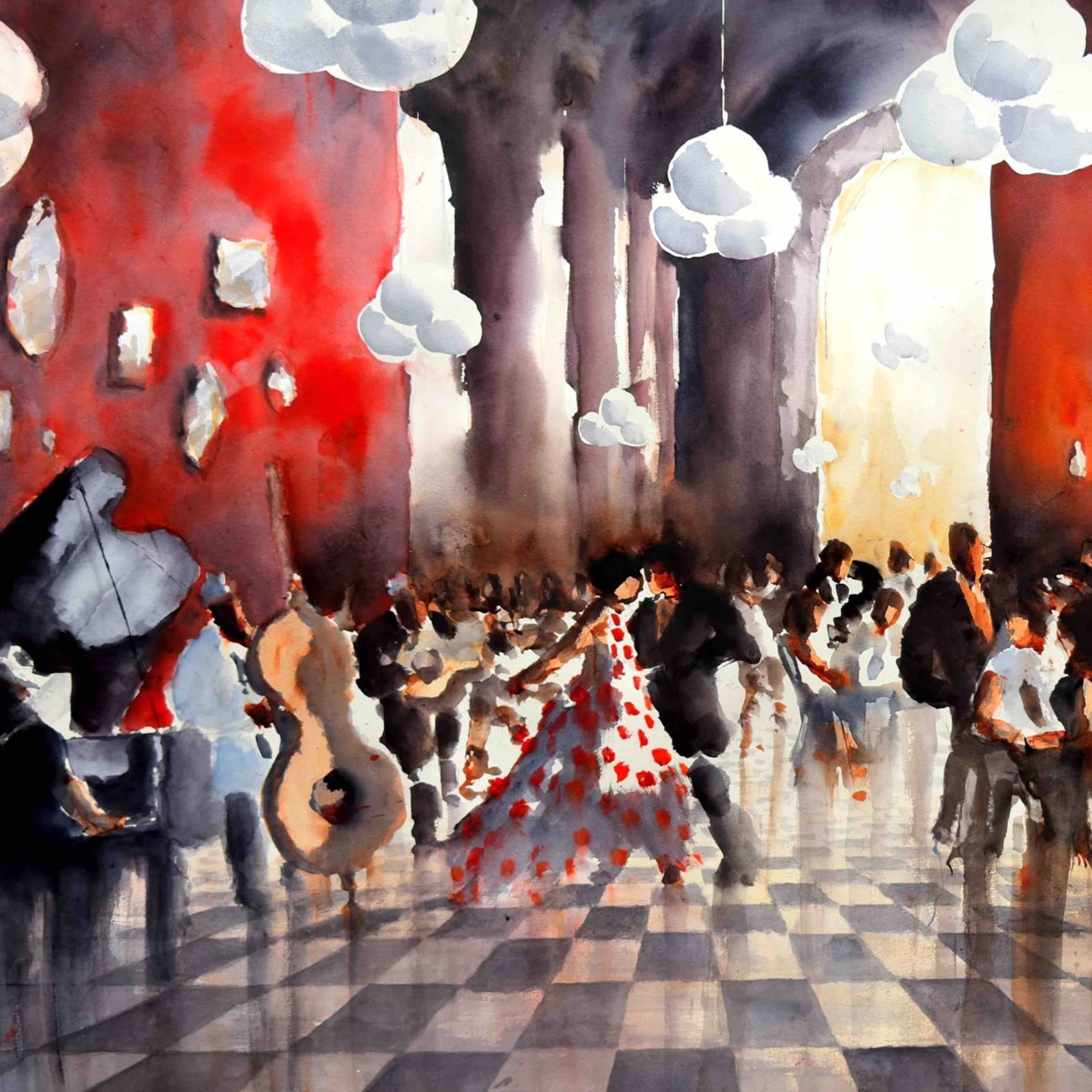 Helena Trovaj finds inspiration in living things and the motifs can range from cities, people and water to urban environments. There are visualised encounters through the noise of the city, restaurant environments and people, across streets together with a clear accent colour, which is a strong characteristic of her painting. From initially reproducing the landscape in a tidy and orderly way exactly as it is, she has gradually moved on to instead creating her own interpretations of the environments. In the alternations of light between light and dark, the watercolours emerge.