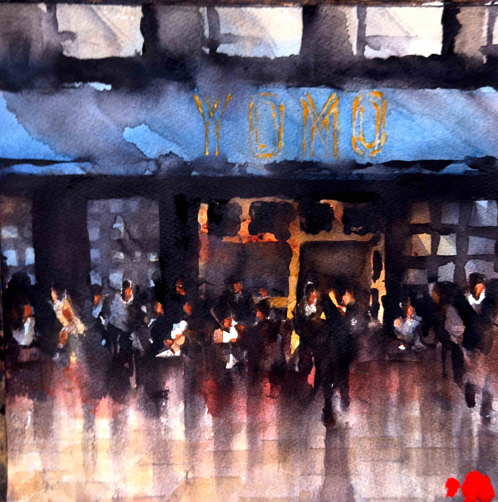 Helena Trovaj finds inspiration in living things and the motifs can range from cities, people and water to urban environments. There are visualised encounters through the noise of the city, restaurant environments and people, across streets together with a clear accent colour, which is a strong characteristic of her painting. From initially reproducing the landscape in a tidy and orderly way exactly as it is, she has gradually moved on to instead creating her own interpretations of the environments. In the alternations of light between light and dark, the watercolours emerge.