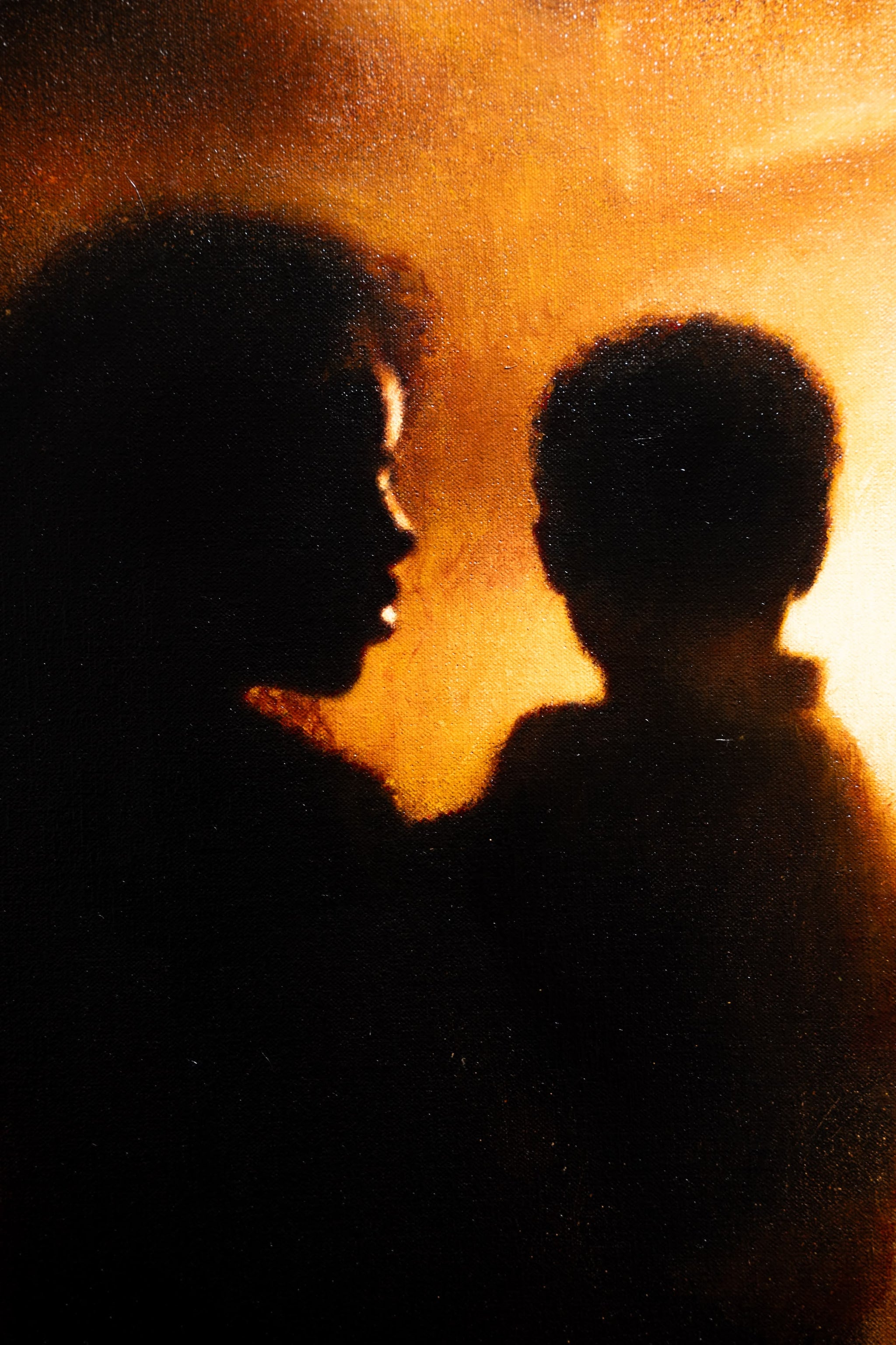 Victor Ajayi (born 1999) Born in Nigeria, raised in Ireland and now based in Stockholm, Victor Ajayi has never truly felt at home anywhere. Self-taught since the age of ten, his art explores the delicate balance between togetherness and chaos – a constant state of limbo where he finds beauty and meaning in the darkness.