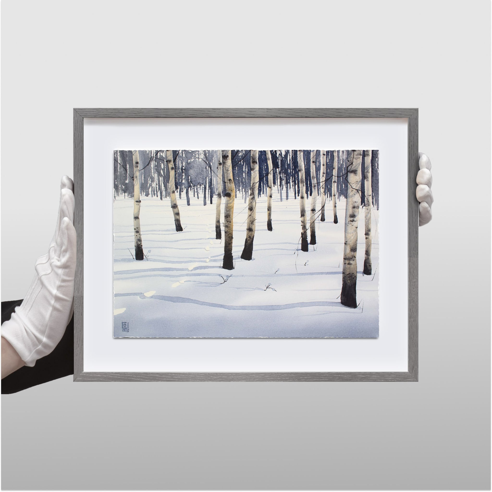 The work is displayed with a hand-built gray wooden frame and anti-reflective and UV-protective Art glass. You can choose to purchase the work as just the sheet or with that framing through the options here. Contact us if you wish to request other frame options. We have our own Frame shop and are happy to help.