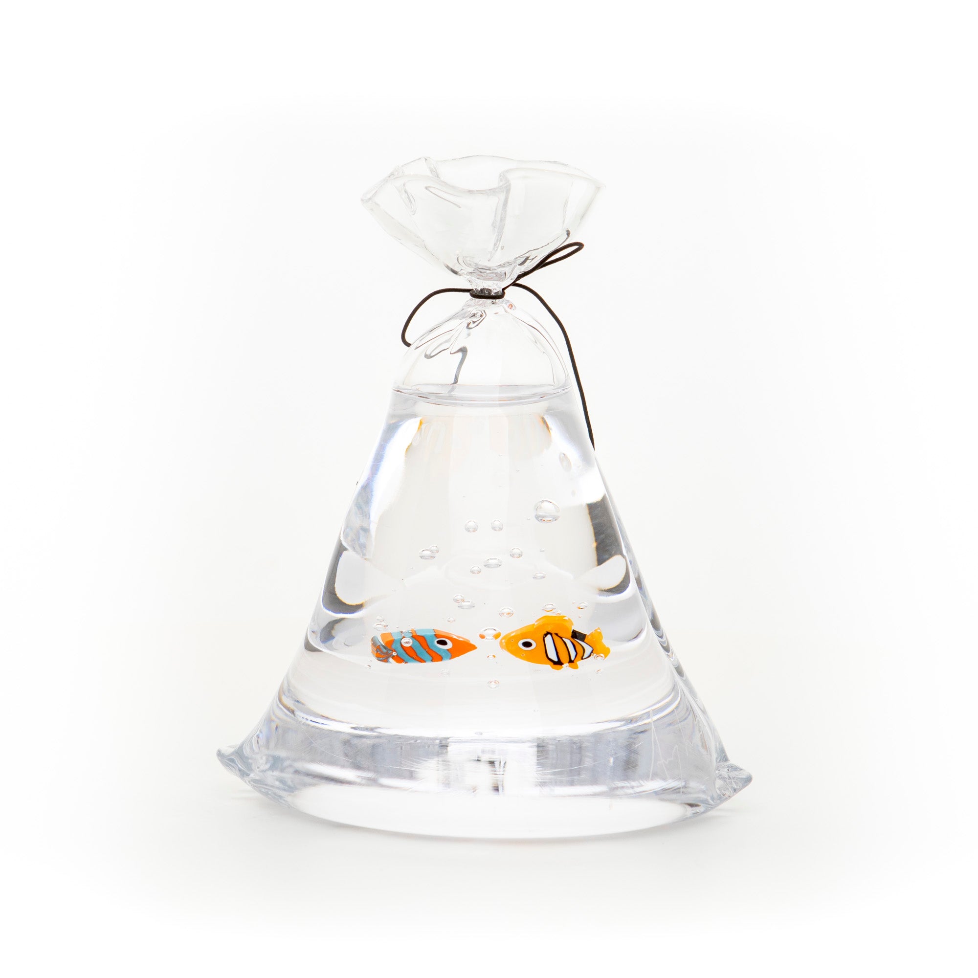 Amy om fiskpåsarna: "Fiskpåsarna kom från ett barndomsminne. Vi hade många guldfiskar och det var i en påse de kom i när de gjorde resan hem. Glaset har på många sätt likheter med vatten och för mig är det naturligt att använda glaset till att spegla andra element”.
