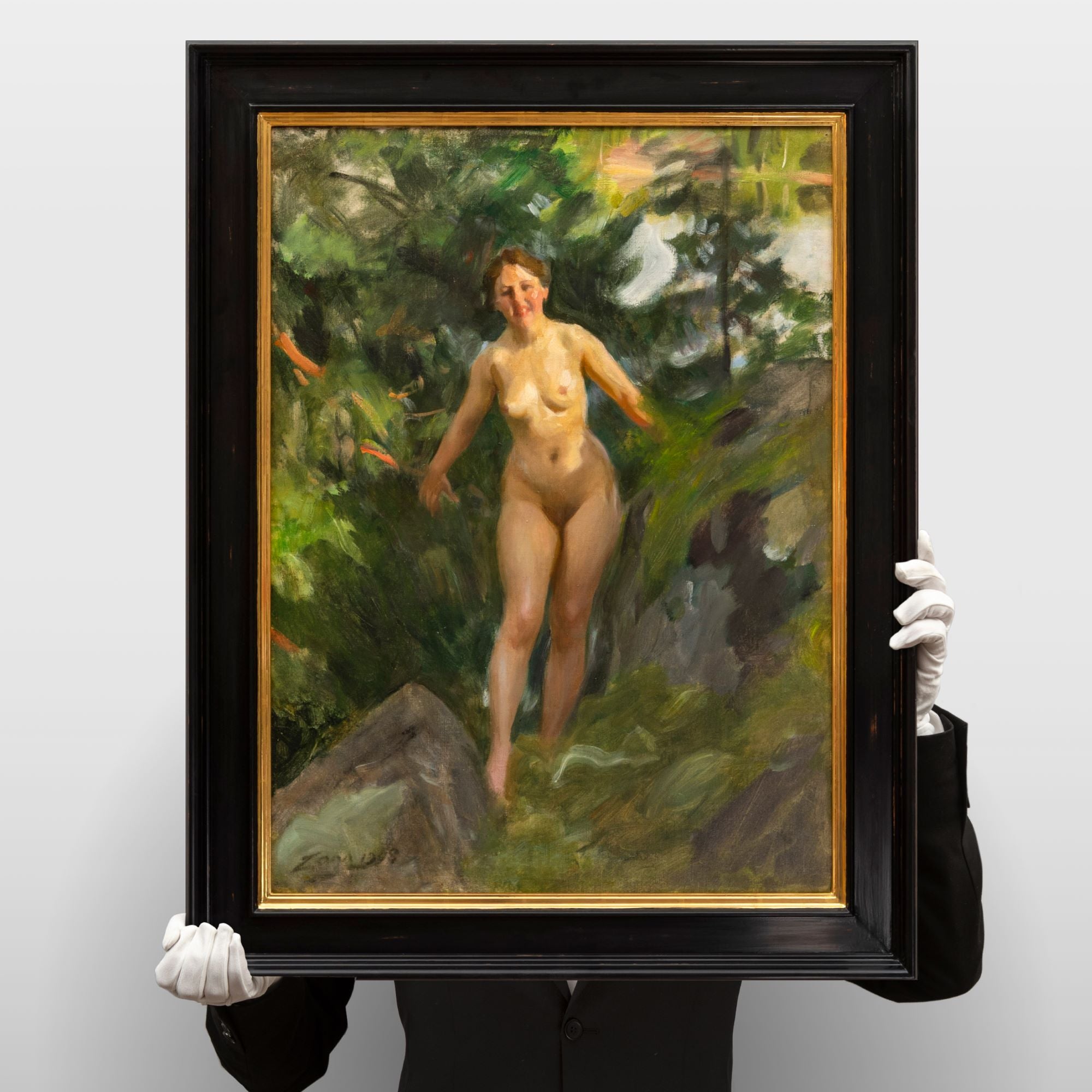 Anders Zorn (1860-1920) föddes i Mora. Huvudsakligen vilade hans rykte på hans porträttkonst och han kom att avporträttera många storheter, däribland presidenter och kungligheterna, exempelvis avporträtterades Theodore Roosevelt i en etsning. I slutet av 1880-talet började Zorn att arbeta i den genre som alltmer skulle komma att bli hans kännetecken, nakenhet i det fria. Vattnets rörelser och ljusets reflexer på vattenytan. Det var något som länge intresserat honom och komplicerades motivet genom att placera en modell vid eller i vattnet, i syfte att skildra en syntes mellan människa och natur. 1896 flyttade makarna Zorn hem till Sverige och Zorngården i Mora. Det medförde ett ökat intresse för hembygden, vilket skulle komma att speglas i hans måleri.