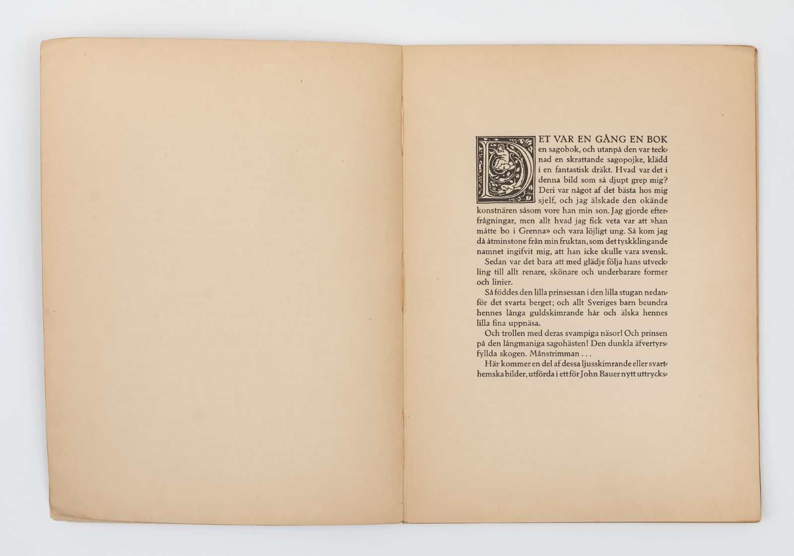 John Albert Bauer (1882-1918) var en svensk konstnär och illustratör. Han blev berömd för sina illustrationer till sagorna i ”Bland tomtar och troll” i början av 1900-talet. Tidigt i sin karriär genomförde Bauer ett antal resor till Paris utan till Lappland, Tyskland och Italien som för alltid kom att prägla hans konst. År 1907 började han illustrera för ”Bland tomtar och troll” och räknades snabbt som en av landets främsta sagoillustratörer. John Bauer målade mestadels akvareller, men även i olja och fresker. Hans illustrationer har haft en djup påverkan på den svenska folkloren och sagoberättandet. Ett inflytande som över 100 år efter hans död är påtagligt och ständigt aktuellt. Han blev endast 36 år gammal men lyckades trots detta forma urbilden av de svenska folksagorna.