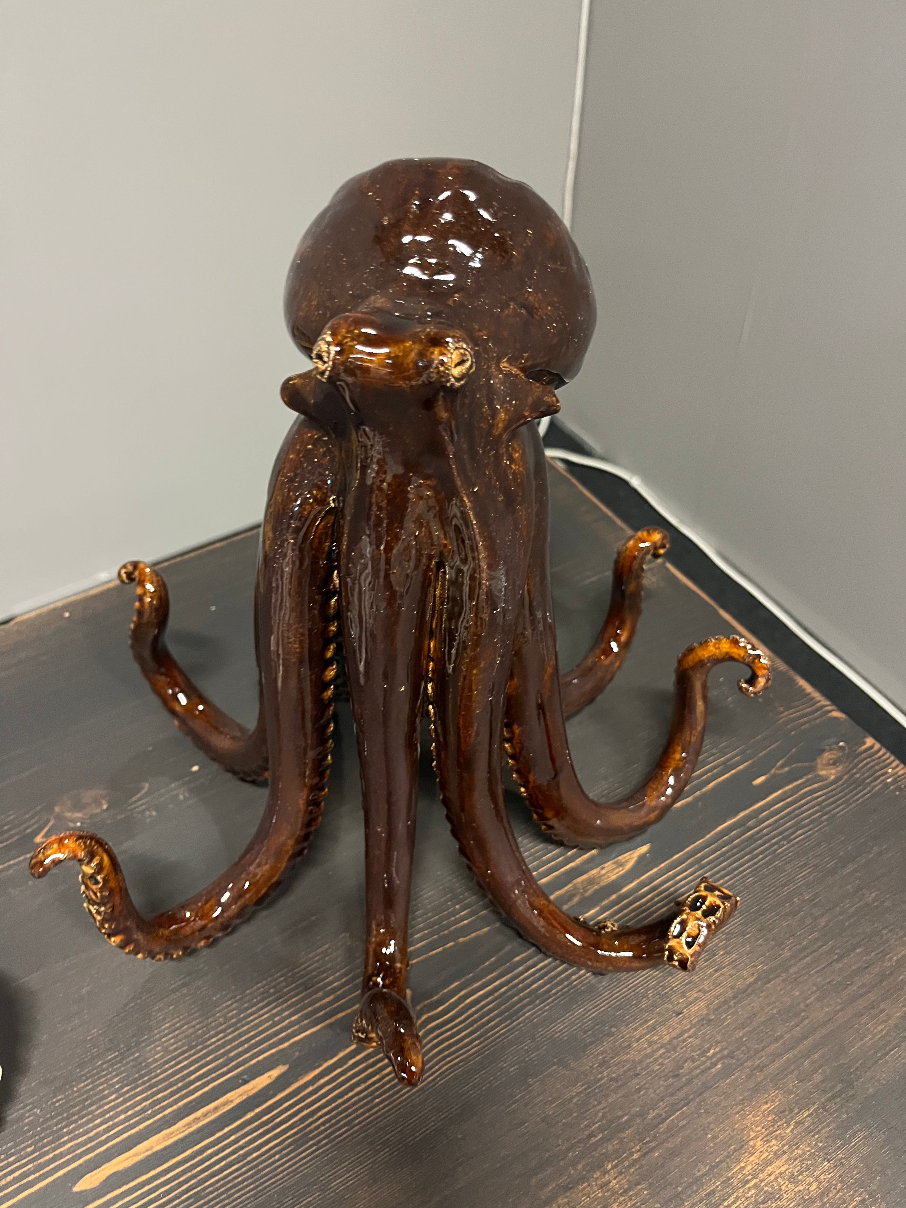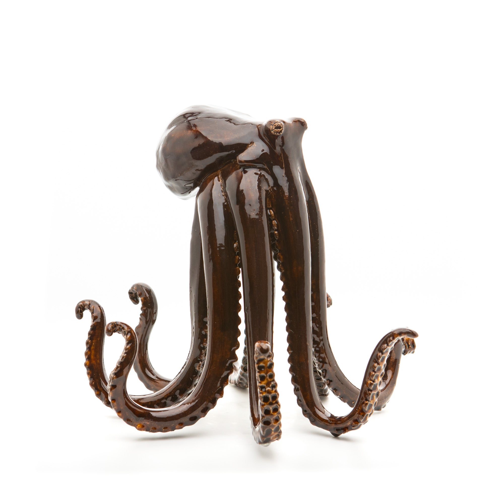 Mia Eveliina Alajääskös bläckfiskskulpturer erbjuder en balanserad blandning av kreativitet och hantverk. Handskulpterade med noggrann uppmärksamhet på detaljer speglar varje pjäs en unik utforskning av form. Mias användning av personligt blandade glasyrer och strategiskt placerade kristaller ger en distinkt touch vilket resulterar i skulpturer som för in havets tjusning i alla utrymmen.