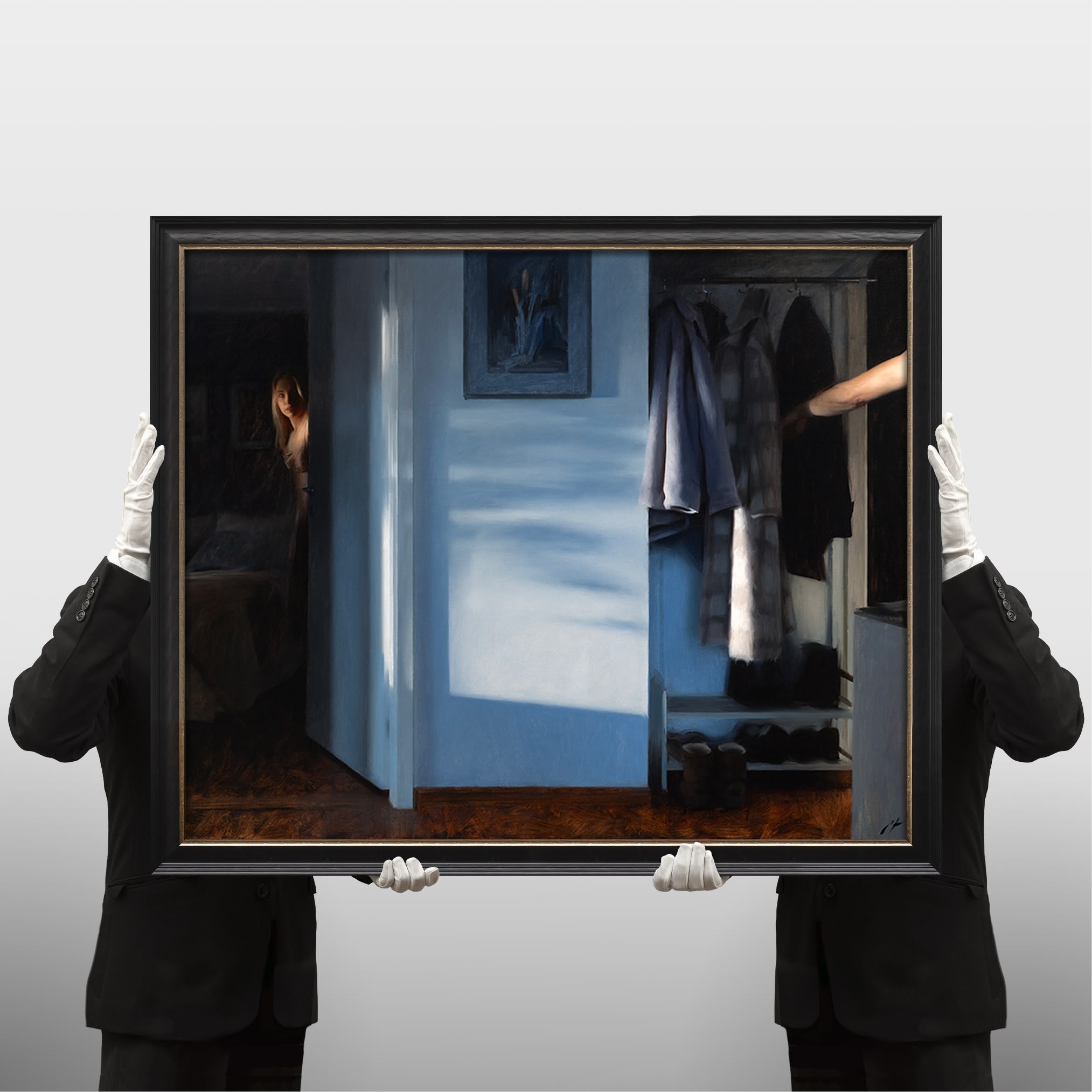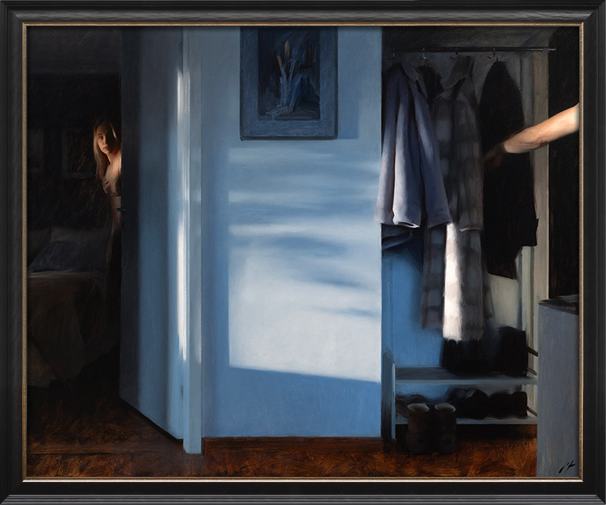 Nick Alm (f. 1985 i Eksjö) upptäckte tidigt glädjen i måleriet med olja och akvarell och är i dag en av Sveriges mest uppmärksammade konstnärer inom den realistiska traditionen. Som i ett minne lever gestalterna i ett detaljrikt fokus, medan periferin varsamt suddas ut. Känslorna och spänningen som uppstår mellan individerna förmedlas i en ordlös och direkt kommunikation med betraktaren.